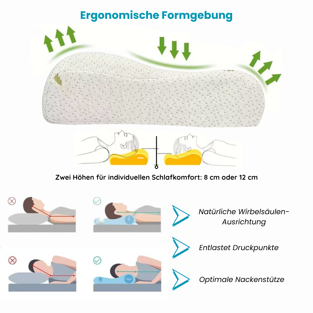 Herkömmliche Kissen sind oft zu hart oder zu weich und geben keine gleichmäßige Unterstützung. Dieses Kissen hält die Balance zwischen Komfort und Stabilität: Dein Kopf sinkt weder zu tief ein noch liegt er unnatürlich hoch, sondern wird gleichmäßig getragen. Das sorgt für eine natürliche Ausrichtung der Wirbelsäule und beugt Verspannungen vor.